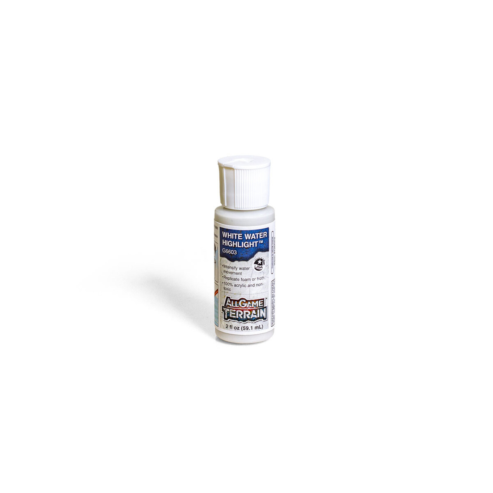 White Water Highlight™ is used to replicate foam or froth to a water feature on your miniature base, terrain feature or gaming mat. Use to intensify movement for fast-moving water. White Water Highlight is water soluble and non-toxic.